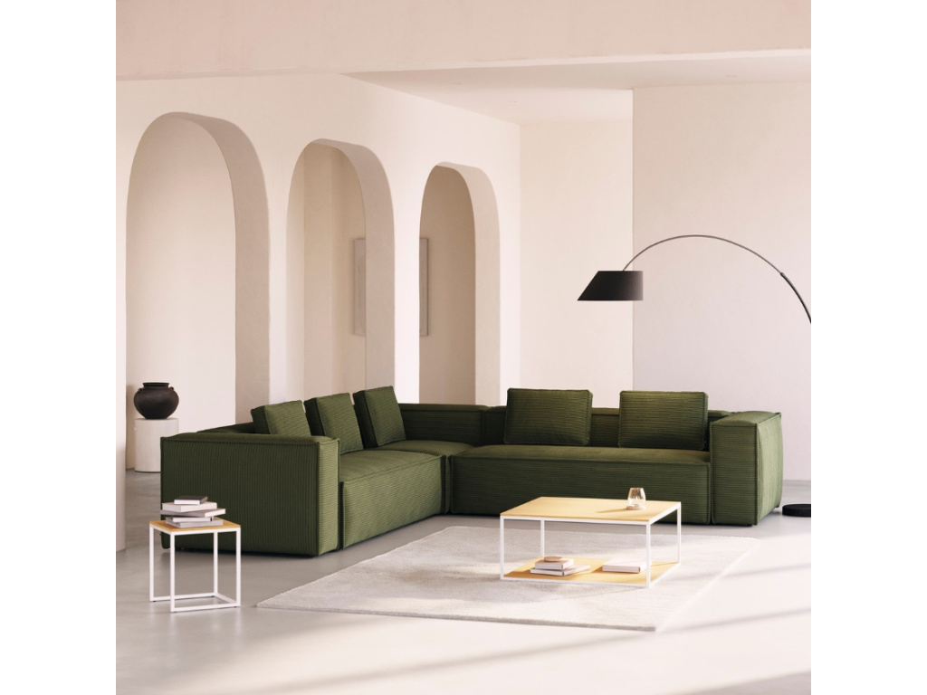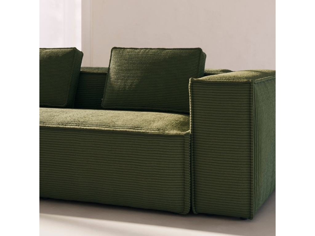 Elegantní zelená rohová pohovka Kave Home Blok hravě splňuje všechny požadavky na ideálního společníka pro chvíle odpočinku a relaxace. Maximální komfort zaručuje měkký sedák a také originální, na dotek velmi příjemné, manšestrové čalounění v zeleném odstínu. Prostorná pohovka skvěle vynikne jak ve skandinávských, tak i v moderních interiérech s vintage prvky. Užijte si s celou rodinou či návštěvou pohodlí a vychutnejte si originální styl s pohovkou Blok.