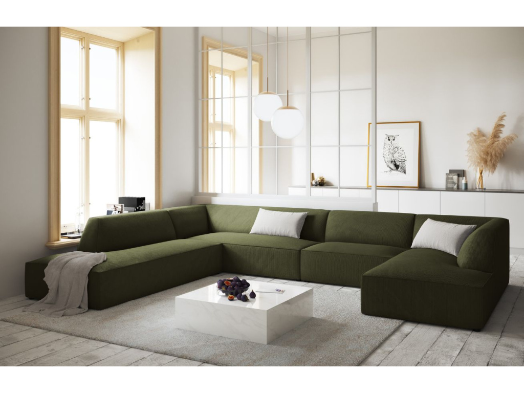 Rohová pohovka Ruby od společnosti Micadoni se stane příjemným doplňkem vašeho obývacího pokoje. Matná manšestrová tkanina, se strukturovaným dekorem v podobě proužků, je velmi příjemná na dotek. Látka je pokryta hydrofobní vrstvou, která chrání před rychlou absorpcí rozlité kapaliny do struktury nábytku. Navíc disponuje vysokou odolností proti oděru. Kombinací různých modulů a velikostí pohovek Ruby, si můžete vytvořit konfigurace sezení podle svých představ. Sezení Ruby doporučujeme spojit s jednoduchým konferenčním stolkem, na který můžete umístit svíčky, dekorace nebo občerstvení. Díky tomu získáte jednoduchou, ale sofistikovanou skandinávskou obývací sestavu.