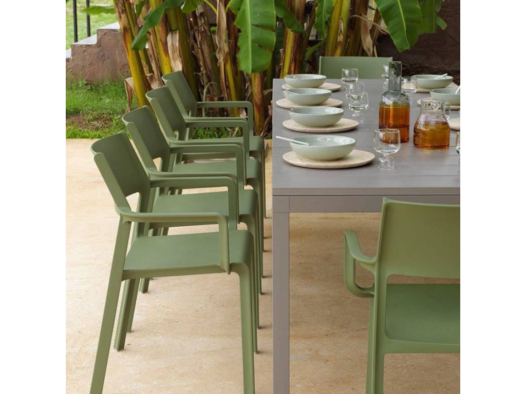 Designová jídelní židle Trill zaujme na první pohled svou jednoduchostí. Je vyrobena z odolného a lehkého polypropylenu, který je vyztužený skelným vláknem s vysokou odolností proti UV záření, díky čemuž se židle stává ideálním prvkem do venkovního prostředí. Její nadčasový design se bude skvěle hodit nejen na zahrady, ale také do komerčních prostor. Její výhodou jsou pohodlné područky a její stohovatelnost, což oceníte při rychlém a snadném úklidu většího počtu židlí. Židle je k dispozici v několika barevných variantách a můžete ji doplnit barovými židlemi, židlemi bez područek nebo podsedákem ze stejnojmenné série.
