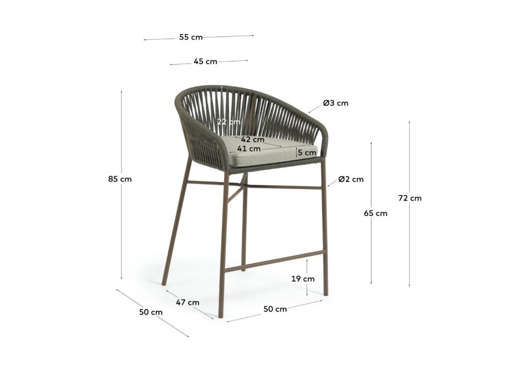 Jednoduchá barová židle Kave Home Yanet jednoznačně zaujme svým hustě proplétaným sedákem a opěradlem. Tento jedinečný design zajišťuje opěradlo z polyesterových provázků, čalouněný sedák a kovová podnož. Yanet se hodí do krytých venkovních i vnitřních prostor.
