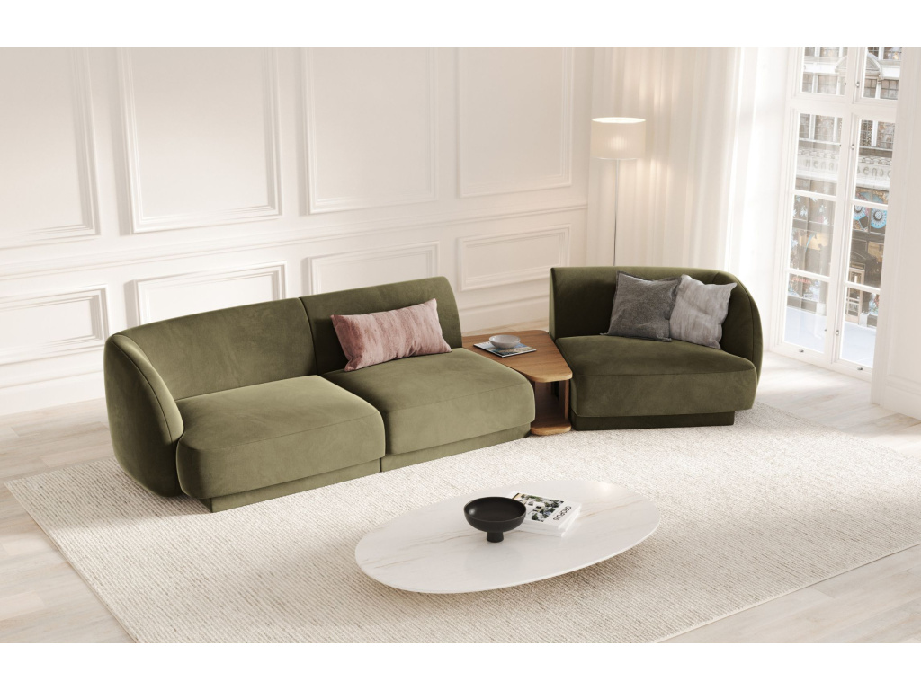 Čtyřmístnou pohovku Miley od značky Micadoni si zamilujete! Její elegantně obloukovité opěradlo vás doslova zve k odpočinku, zatímco jemně zapuštěná základna dodává celému kusu vzdušnost a lehkost. Měkký, odolný a na pohled příjemný samet poskytuje nábytku lákavý vzhled, který vnese do místnosti záři a pocit sofistikovanosti. Pohovka je ideální volbou do interiéru v moderním nebo skandinávském stylu. K pohovce je možné přikoupit další produkty z kolekce Miley. Díky tomu si můžete vytvořit sedací soupravu, kterou je vhodné kombinovat se skleněným nebo dřevěným konferenčním stolkem.