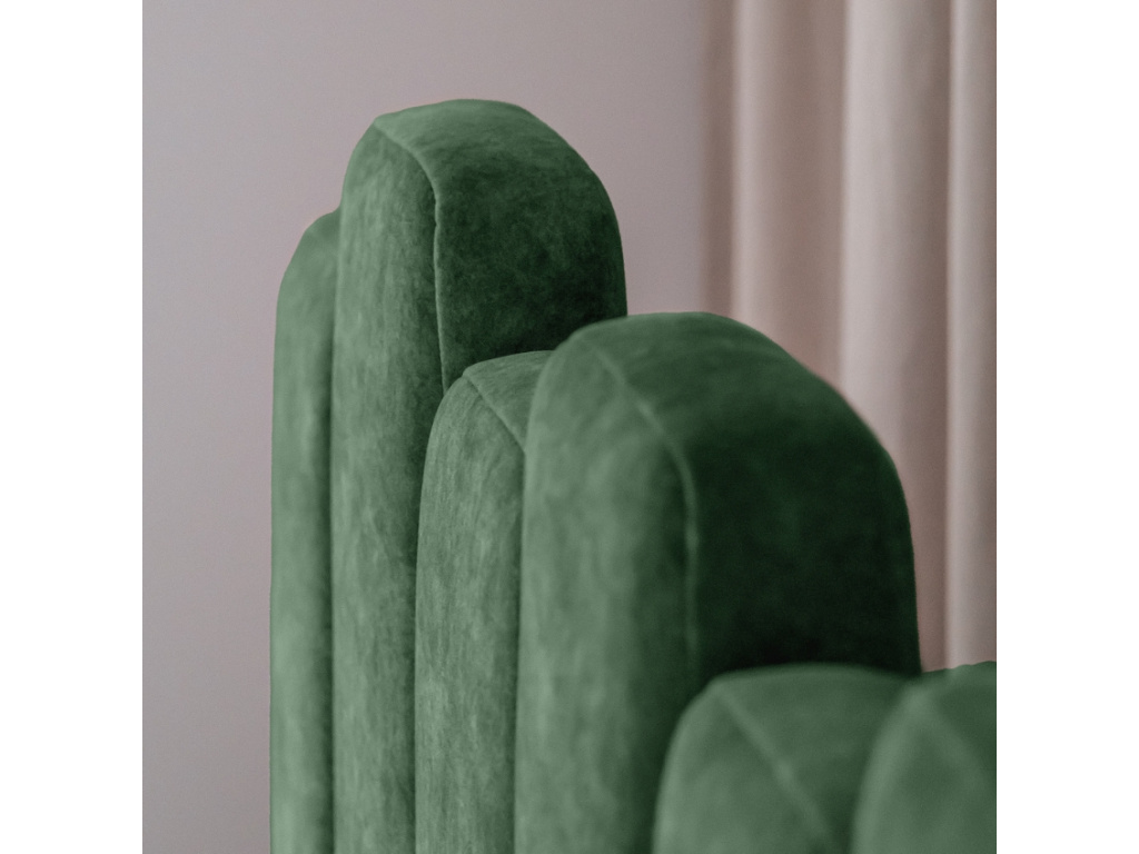 Dvoulůžková postel Dreamy Aurora od značky Miuform vás dostane svým designem díky geometrickému čelu. Hebká sametová látka dodá posteli na vznešenosti a eleganci a zdůrazní její komfort. Díky měkké pěnové výplni si užijete pohodlí, ať už budete klidně spát nebo si číst oblíbenou knížku. Postel disponuje rozlehlým úložným prostorem na polštáře a přikrývky, do kterého se snadno dostanete díky popruhu na přední části.