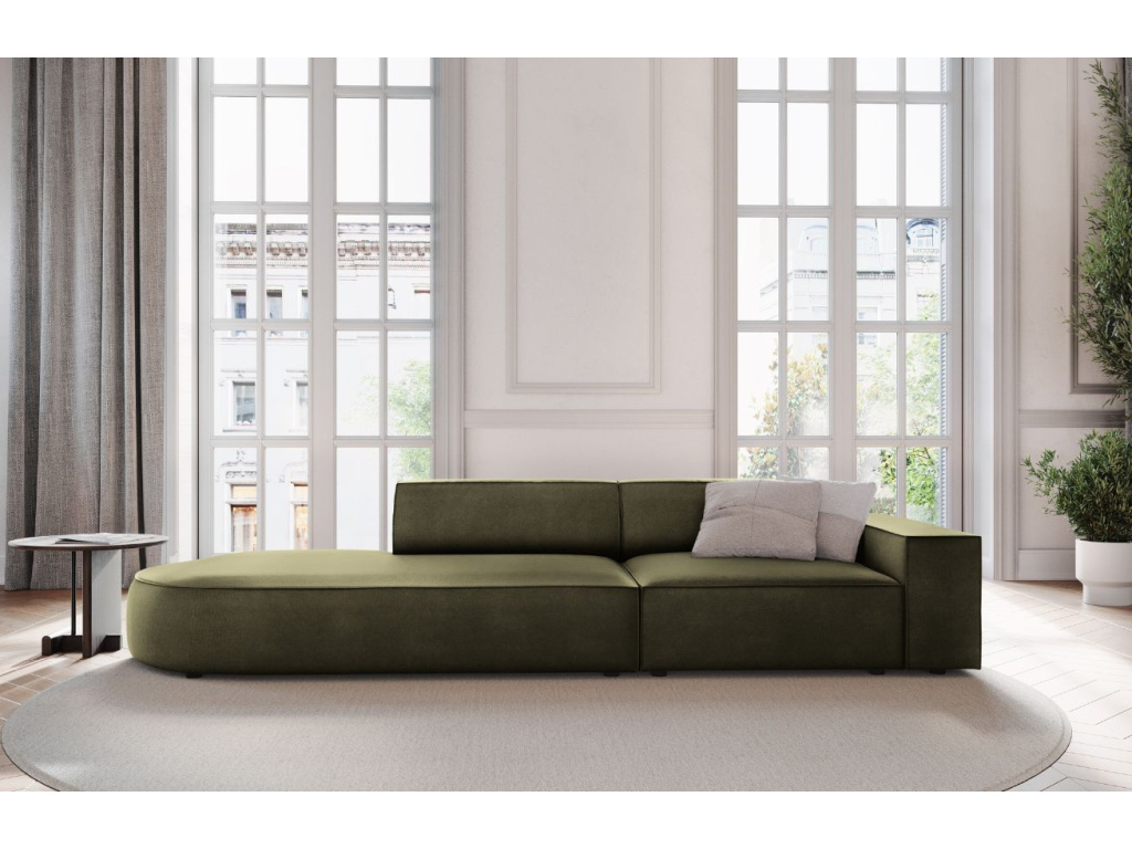 Prostorná modulární trojmístná pohovka Jodie od značky Micadoni zaujme svou krásnou siluetou. Čalounění je vyrobené z tkaniny, která imituje samet s jemným leskem. Látka se vyznačuje dobrou odolností proti oděru, což výrazně snižuje riziko jejího poškození, také prošla testem na cigarety, díky tomu je pohovka vhodná i do komerčních prostor. Její polstrovaný tvar vám zaručí plnohodnotný odpočinek, zatímco hluboký sedák umožní dokonalou relaxaci. Opřít se můžete také o tvarované opěráky a široké područky, které vybízejí k nespoutanému lenošení. Nízká podnož ladí s útulnou siluetou nábytku. Velký výběr modulů vám umožní vytvořit si kombinace, které budou nejlépe vyhovovat vašemu obývacímu pokoji v minimalistickém či skandinávském stylu.