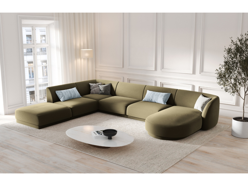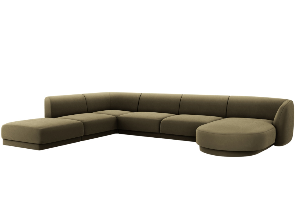 Rohovou pohovku Miley od značky Micadoni si zamilujete! Její obloukovitě tvarované opěradlo vybízí k tomu, abyste se na chvíli pohodlně usadili. Díky mírně zapuštěné základně dodává sezení vznášející se charakter, který dotváří vzhled připomínající oblak. Měkký, odolný a na pohled příjemný samet poskytuje nábytku lákavý vzhled, který vnese do místnosti záři a pocit sofistikovanosti. Pohovka je ideální volbou do interiéru v moderním nebo skandinávském stylu. K pohovce je možné přikoupit další produkty z kolekce Miley. Díky tomu si můžete vytvořit sedací soupravu, kterou je vhodné kombinovat se skleněným nebo dřevěným konferenčním stolkem.