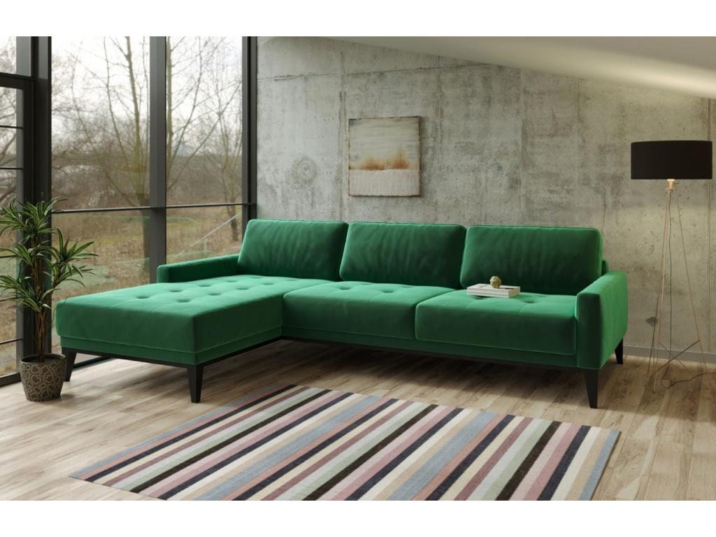 Designová rohová pohovka MESONICA Musso Tufted bude díky svému úchvatnému vzhledu nepřehlédnutelnou součástí vaší domácnosti. Stabilní podnož z bukového dřeva je skvěle doplněna o zelené čalounění z kvalitní sametové látky, která dodává pohovce estetický vzhled a nadprůměrnou životnost. Čalouněný sedák je prošívaný, což celé pohovce dodává na atraktivitě.