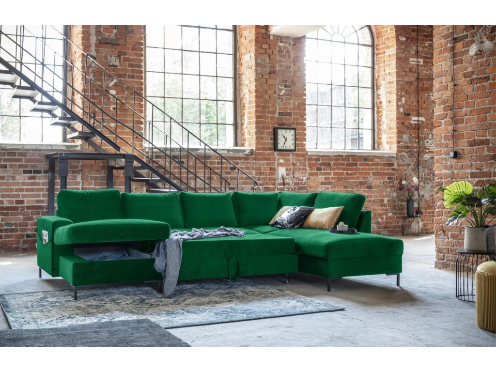 Sametová rozkládací pohovka Lofty Lilly 303 cm, pravá