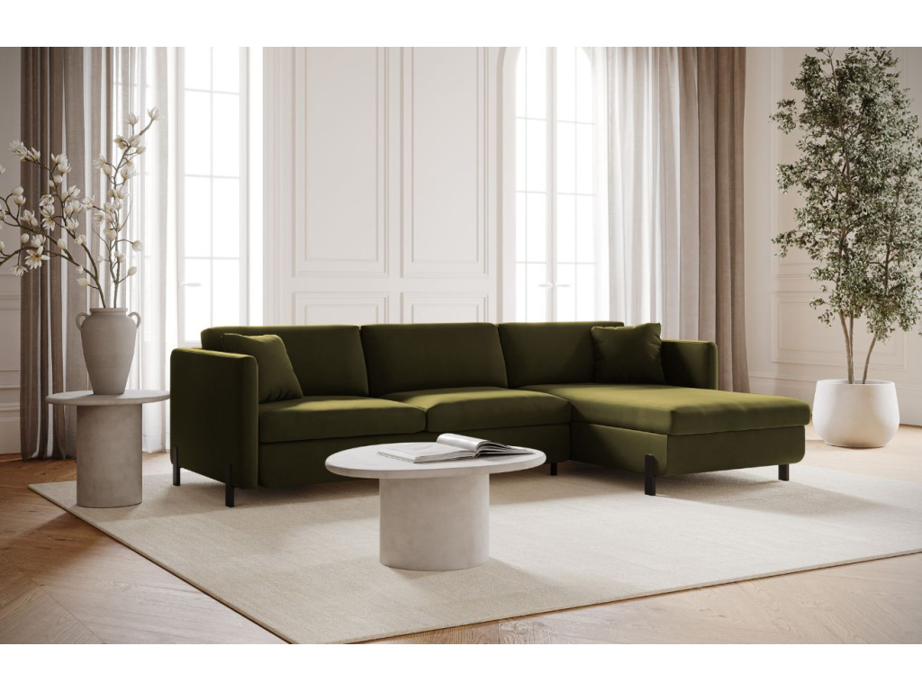 Rohová čtyřmístná pohovka Gloria je elegantní kombinací klasiky a moderního stylu, která se stane dominantou každého interiéru. Její lehká silueta s jemně tvarovanými podnožkami působí vzdušně a nadčasově, zatímco měkce polstrované sedáky a opěrky zaručují pohodlí při každodenním odpočinku. Velkou předností je rozkládací funkce s expresním mechanismem, díky kterému během chvilky vytvoříte pohodlné lůžko vhodné pro návštěvy či víkendové lenošení. Součástí jsou i dekorativní polštářky, které pohovce dodávají útulný vzhled. Luxusní sametová látka s jemným leskem a krátkým vlasem je na dotek velmi příjemná a zároveň mimořádně odolná. Díky technologii LiquidBlocked tekutiny nepronikají do vláken, a povrch se tak snadno čistí. Látka navíc splňuje bezpečnostní normu odolnosti vůči vznícení, což ji činí vhodnou i do komerčních prostor. Pohovka Gloria skvěle zapadne do moderních i klasických interiérů – ať už jde o obývací pokoj, pracovnu, nebo menší byt. Pro ještě větší pohodlí a stylový vzhled doporučujeme doplnit ji o konferenční stolek, měkký pléd nebo dekorativní polštáře.
