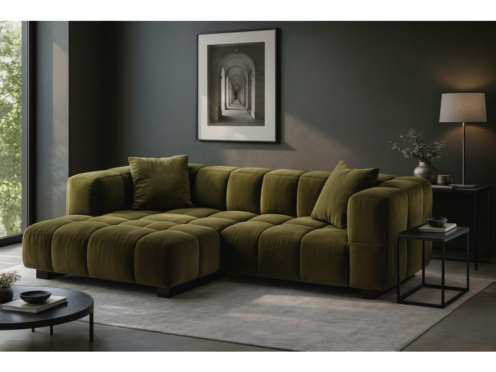 To chciZelená sametová rozkládací pohovka Puma 260 cm, levá