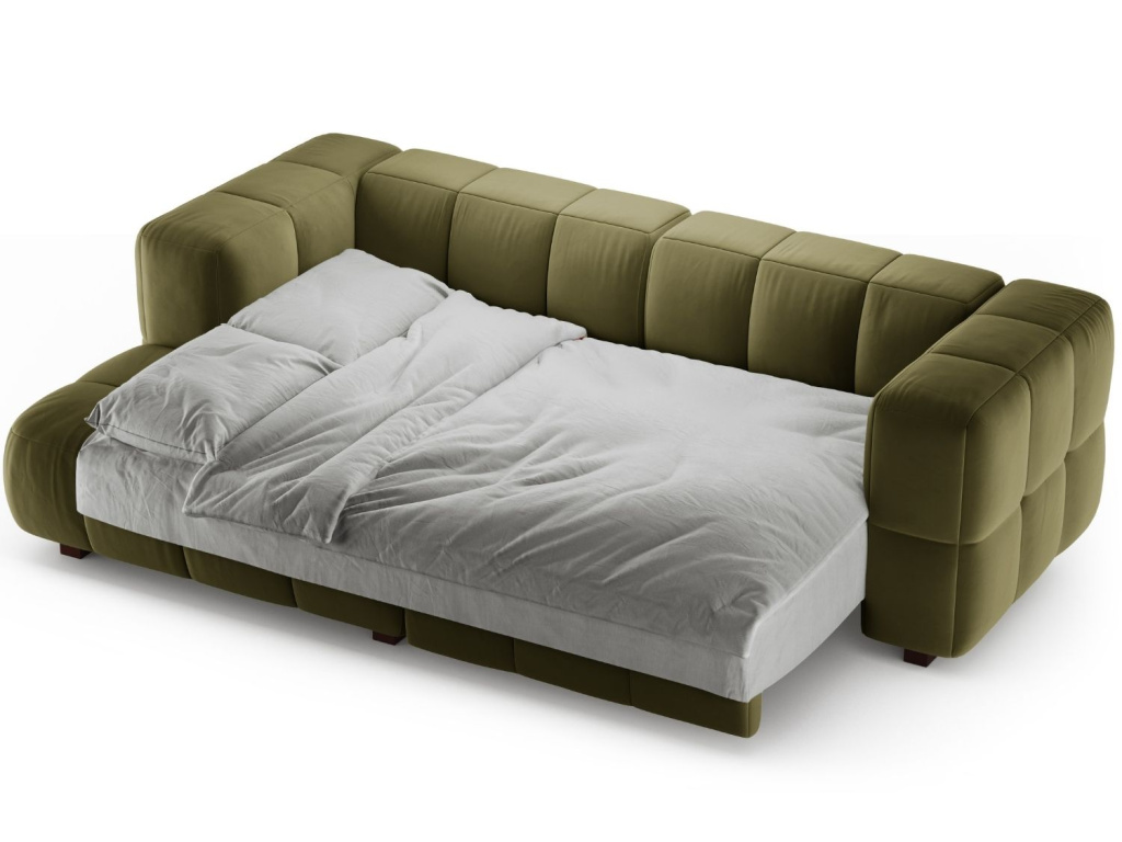 Pohovka Puma je víc než jen nábytek, je to dokonalé spojení pohodlí, funkčnosti a moderního designu. Během dne nabízí prostorné a útulné posezení pro rodinu i přátele a večer se jediným pohybem promění v plnohodnotnou postel, na které si vychutnáte klidný spánek. Díky vestavěnému zvedacímu systému a praktickým úložným prostorům budete mít vždy po ruce deky, polštáře nebo ložní prádlo, aniž byste museli řešit nedostatek místa. Její středně měkké a pružné sezení s nadýchanými polštáři vás okamžitě vtáhne do světa odpočinku, zatímco výrazné prošívané čalounění dodá interiéru moderní vzhled. Ať už hledáte dominantní prvek do rodinného obývacího pokoje, multifunkční řešení do menšího bytu nebo elegantní centrum pro setkávání, Puma splní všechna vaše očekávání. Na výběr je mnoho barevných variant a dva typy čalounění, díky čemuž si ji snadno sladíte se svým domovem. Jednou z možností je luxusní sametová látka s jemným leskem, která působí elegantně, je příjemná na dotek a zároveň odolná vůči oděru i tekutinám díky speciální ochranné technologii. Kombinuje vizuální sofistikovanost s praktickou odolností, takže si pohovka uchová svůj půvab po dlouhá léta.