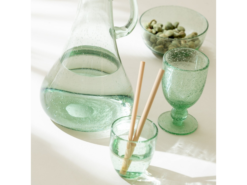 Dejte sbohem pití z obyčejných a nudných sklenic a prostřete svůj stůl s pomocí sklenice ze série Lina od značky J-Line. Jedinečný design, který vyniká svými svěžími mentolově zelenými tóny rozhodně oživí vaše stolování. Zaujme jemnými bublinkami, které vašemu stolu dodají nejen elegantní, ale také hravý nádech. Pokud chcete své servírování vyladit k dokonalosti, ze stejnojmenné série si můžete pořídit také skleničku na vodu a misku.