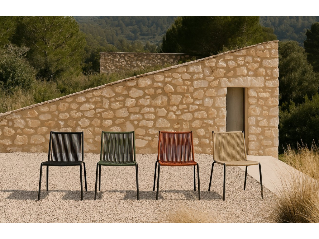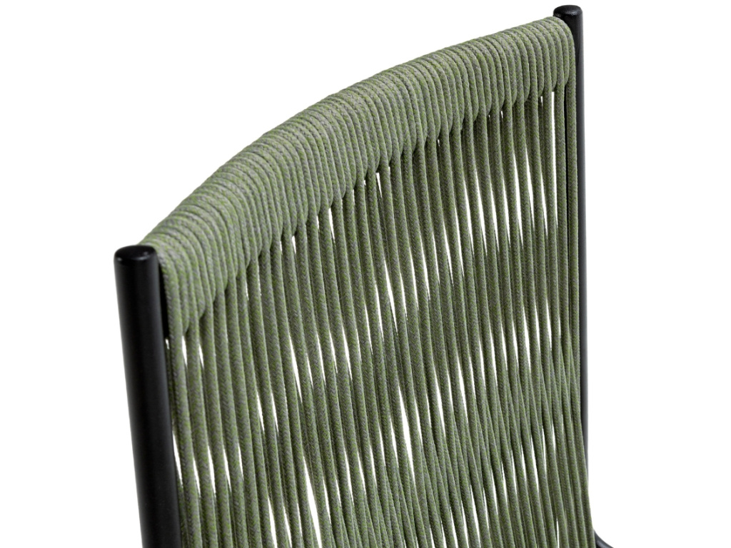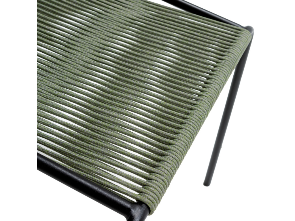 Zelená židle Emily bude krásně doplňovat vaši zelenou flóru na zahradě nebo balkoně. Výplet v olivově zeleném odstínu vytváří jemný vizuální rytmus, zatímco černá kovová konstrukce zaručuje stabilitu a odolnost. Tento model je nabízen rovněž jako barová židle.
