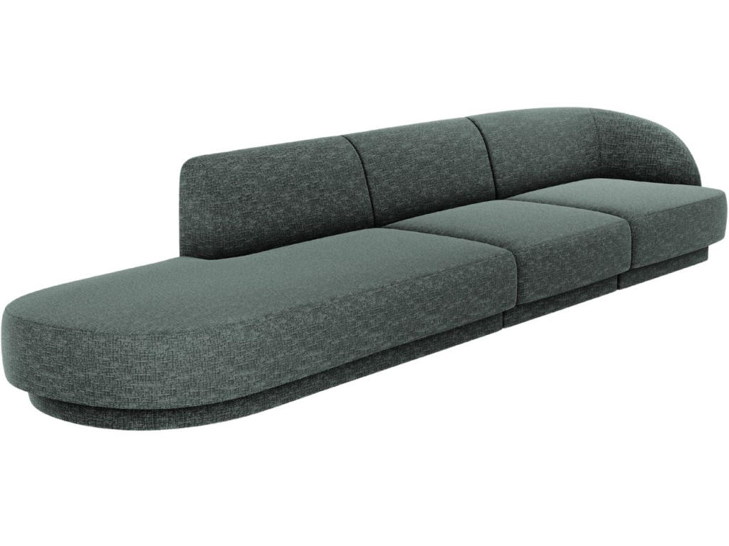 Čtyřmístnou pohovku Miley od značky Micadoni si zamilujete! Její obloukovitě tvarované opěradlo vybízí k tomu, abyste se na chvíli pohodlně usadili. Díky mírně zapuštěné základně dodává sezení vznášející se charakter, který dotváří vzhled připomínající oblak. Žinylková potahová látka je velmi příjemná až téměř hedvábná na dotek. Probarvené nitě vytvářejí poutavou 3D strukturu se stínovým a lesklým efektem. Tkanina je velmi odolná proti oděru, díky tomu je pohovka vhodná i do komerčních prostor. Vysoká kvalita a neobyčejný vzhled látky dodávají nábytku sofistikovaný dojem, který umožňuje jeho široké využití v moderním nebo skandinávském stylu. K pohovce je možné přikoupit další produkty z kolekce Miley. Díky tomu si můžete vytvořit sedací soupravu, kterou je vhodné kombinovat se skleněným nebo dřevěným konferenčním stolkem.