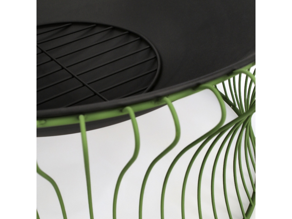 Ohniště Maylis od značky Bizzotto je stylový a praktický doplněk pro vaši zahradu nebo terasu. Jeho moderní design vyniká kombinací černé ohnišťové mísy a zelené kovové konstrukce, která působí elegantně i vzdušně. Stabilní konstrukce zajišťuje bezpečné používání a zároveň slouží jako nosná základna i dekorační prvek. Ohniště je ideální pro příjemné večery s přáteli či rodinou – poskytne teplo, světlo a jedinečnou atmosféru. Miska na oheň je navržena tak, aby odolávala vysokým teplotám i povětrnostním vlivům.