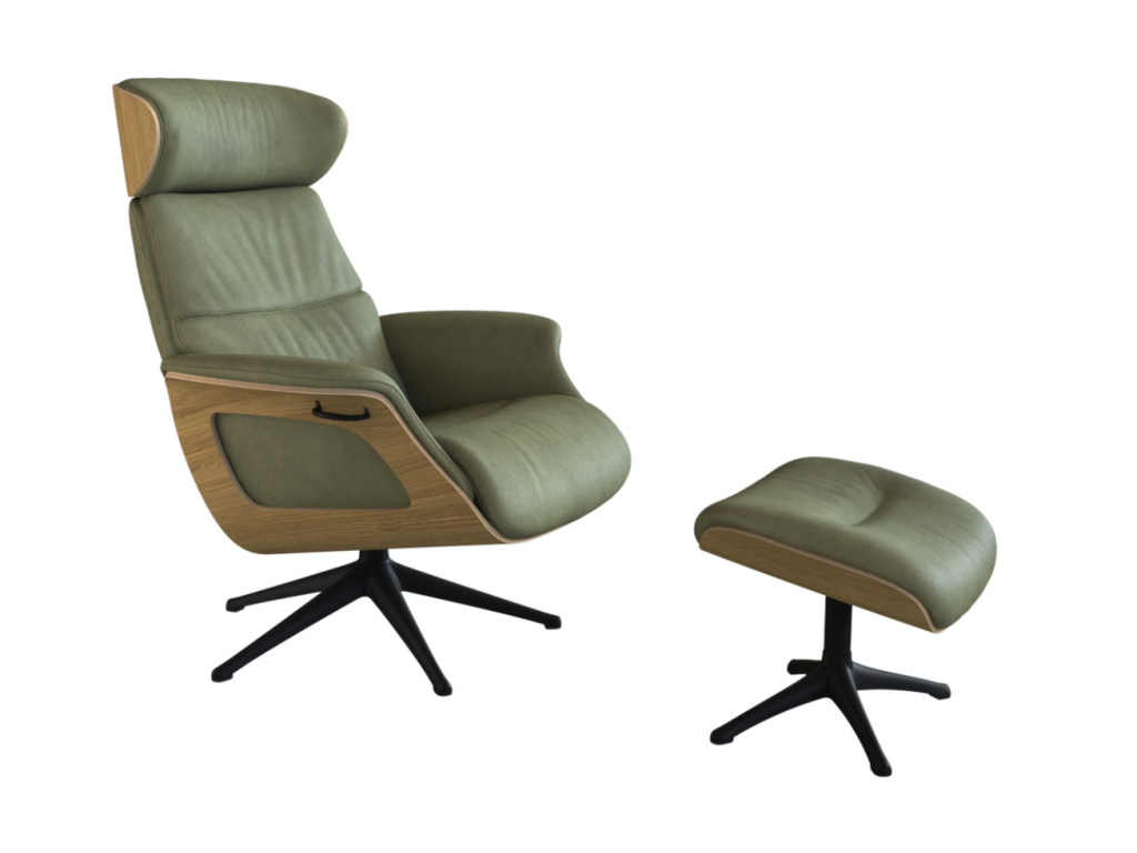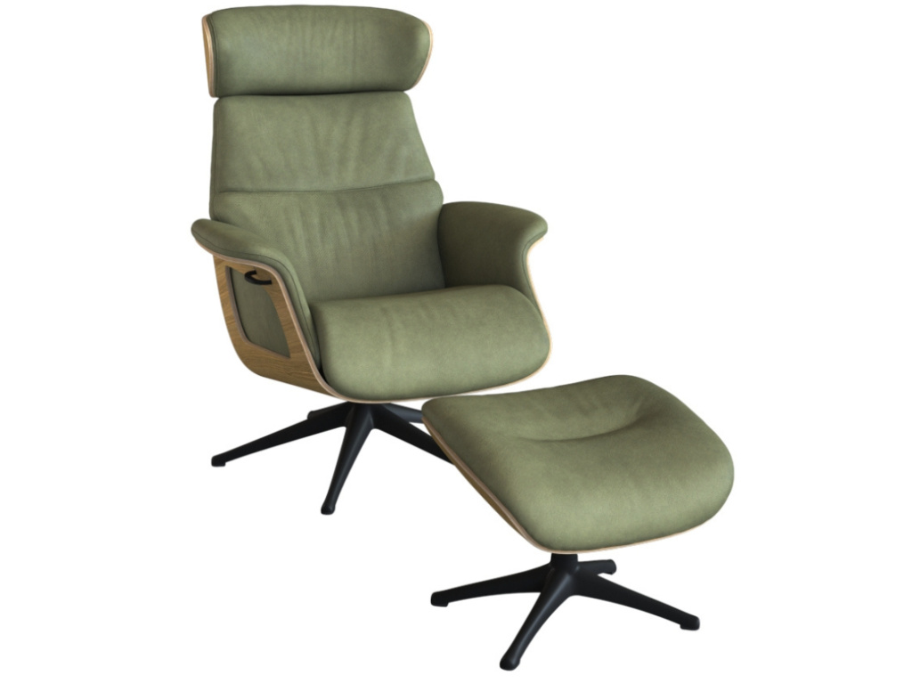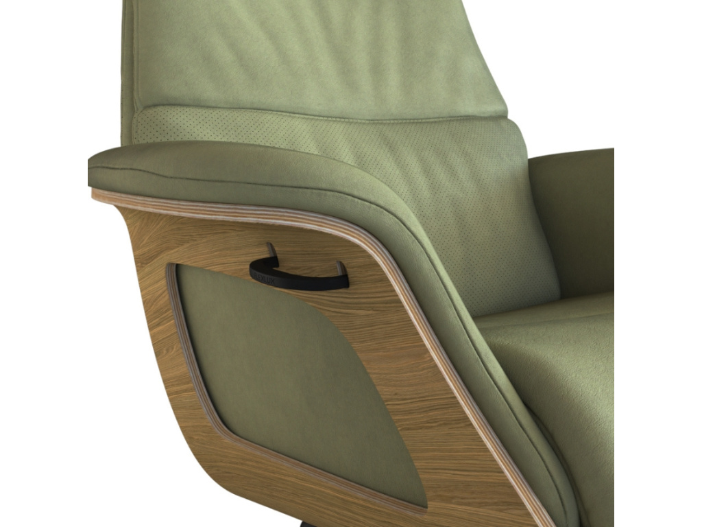 Zelené kožené lounge křeslo Clement značky Flexlux na první pohled zaujme svou konstrukcí z dubové dýhy, která vytváří ojedinělý bytelný základ celého systému. Tato robustní konstrukce v kombinaci s koženým sedákem a černou hliníkovou podnoží vytváří atraktivní kontrast. Konstrukce křesla, čalounění i jeho jednoduché tvary jsou promyšleny do posledního detailu. Měkké polstrování koženého sedáku a opěradla zajišťují kromě nadčasového a osobitého vzhledu také maximální komfort. Křeslo je čalouněné anilinovou kůží Nature v jedinečném olivově zeleném odstínu. Pokud jste milovníci přírodní a velmi jemné kůže, Nature je pro vás skvělou volbou. Použitá kůže má velkou tloušťku, je pohodlná a dodává křeslu nejen sofistikovaný, ale také luxusní vzhled. Skvělou výhodou je možnost nastavit ho do několika různých poloh včetně hlavové opěrky, čímž si jej přizpůsobíte přesně dle vašich představ. Z tohoto křesla se zkrátka nebudete chtít zvednout. Clement se díky svým odolným vlastnostem skvěle hodí i do komerčních prostor jako jsou hotelová lobby či kanceláře.