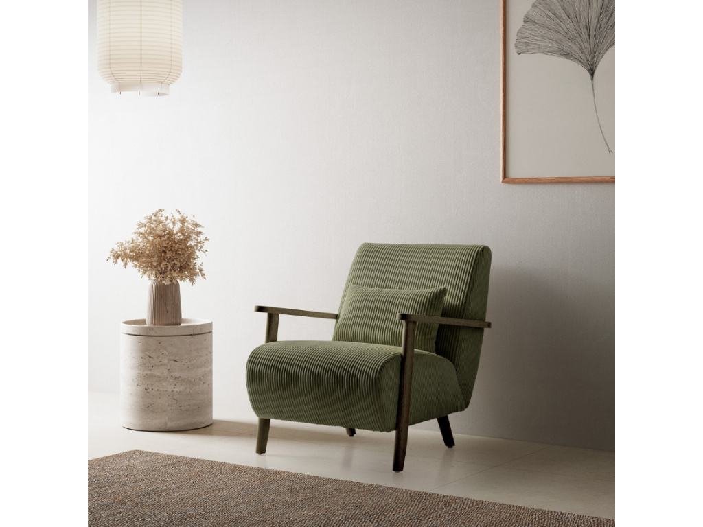 Křeslo Bonnie zaujme klasickým vzhledem s lehkým retro nádechem a čalouněním z tmavě zeleného manšestru a masivní ořechovou podnoží. Díky elegantnímu provedení se skvěle hodí do moderních i vintage laděných obývacích pokojů či čtecích koutků. Součástí je i ladící polštářek pro ještě větší pohodlí. K dispozici je ve dvou variantách.