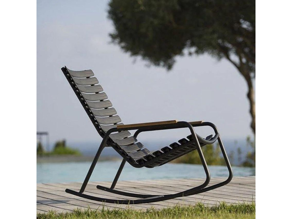 Zahradní houpací křeslo HOUE ReClips zaujme svým moderním vzhledem v severském stylu. Jeho sedák je vyrobený z plastových lamel z recyklovaného plastu a podnož z lakovaného hliníku. Společně vypadají skvěle a vytvářejí unikátní kousek nábytku, který je navíc i díky houpací funkci velice pohodlný. Područky z přírodně zbarveného bambusového dřeva dodávají křeslu na originalitě. Křeslo můžete umístit na terasu nebo pod pergolu, využití ale najde také v interiéru.