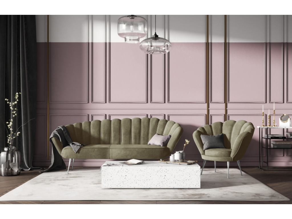 Křeslo Kingston značky Cosmopolitan Design představuje spojení elegance a neotřelého vzhledu. Jeho jemně lesklé sametové čalounění v zeleném odstínu je hebké a příjemné na dotek. Tkanina je velmi odolná proti oděru a absorpci tekutin, čímž zaručí dlouhodobé používání bez známek opotřebení. Celkový design křesla doplňuje stříbrná kovová podnož. Pro dokonale sladěný sedací kout doporučujeme křeslo doplnit o pohovku ze stejnojmenné série. Křeslo je dostupné v 11 barevných provedeních, od šedých tónů až po výrazné a pestré barvy. Užijte si pohodlí a styl v jednom!