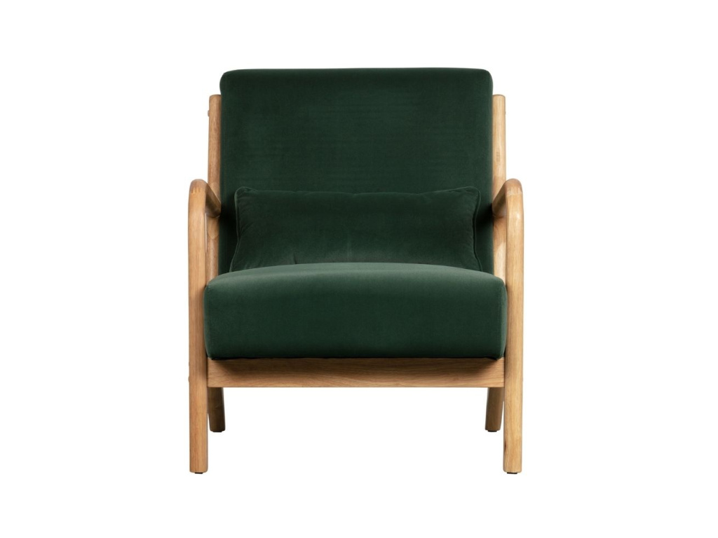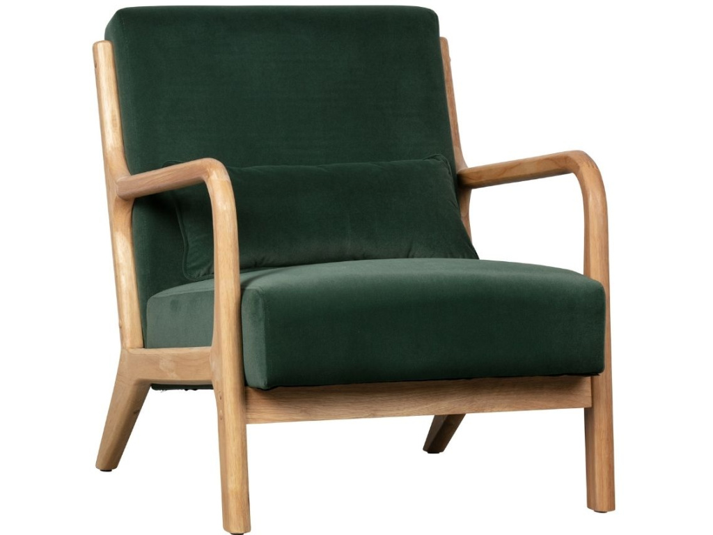 Rustikální zelené křeslo Esence je skvělým doplňkem každé domácnosti a odpočinkové zóny. Štíhlé dřevěné konstrukci dominuje velice pohodlné čalounění v sametovém provedení. To je velice měkké a zachovává si vysokou kvalitu, takže čalounění bez problému odolá intenzivnímu používání. Hodí se do moderních i klasických interiérů a bude skvělým designovým prvkem obývacího pokoje.