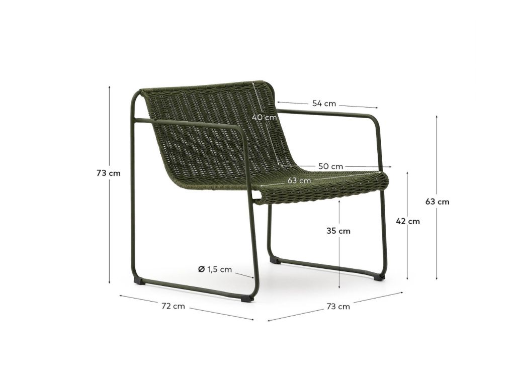 Zelené zahradní křeslo Maurina spojuje moderní estetiku s řemeslnou precizností. Ručně tkaný sedák z provazu odolného proti UV záření přináší komfort i vizuální lehkost, zatímco pozinkovaná ocelová konstrukce zajišťuje vysokou odolnost proti korozi. Váš venkovní prostor můžete dokonale sladit spolu s dalšími designovkami z této kolekce – nabízí zahradní křesla, podnožky, jídelní židle i stoly.