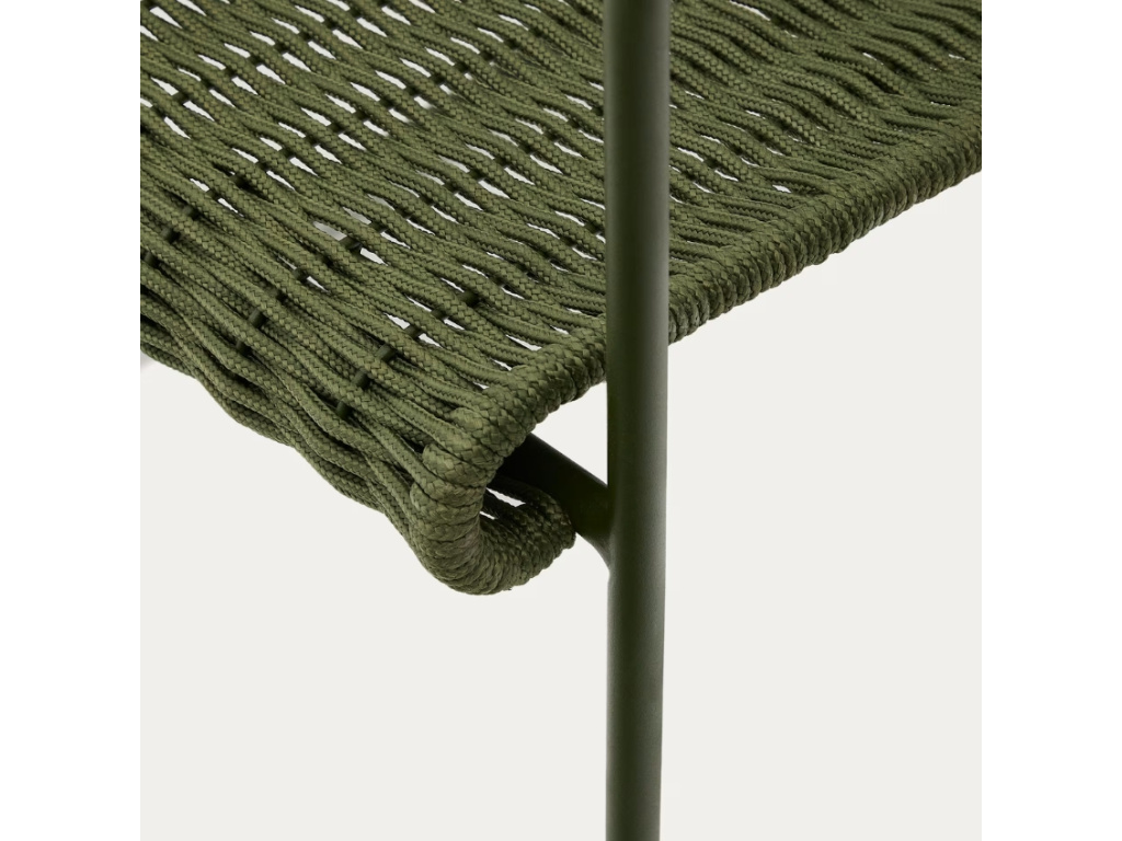 Zelené zahradní křeslo Maurina spojuje moderní estetiku s řemeslnou precizností. Ručně tkaný sedák z provazu odolného proti UV záření přináší komfort i vizuální lehkost, zatímco pozinkovaná ocelová konstrukce zajišťuje vysokou odolnost proti korozi. Váš venkovní prostor můžete dokonale sladit spolu s dalšími designovkami z této kolekce – nabízí zahradní křesla, podnožky, jídelní židle i stoly.
