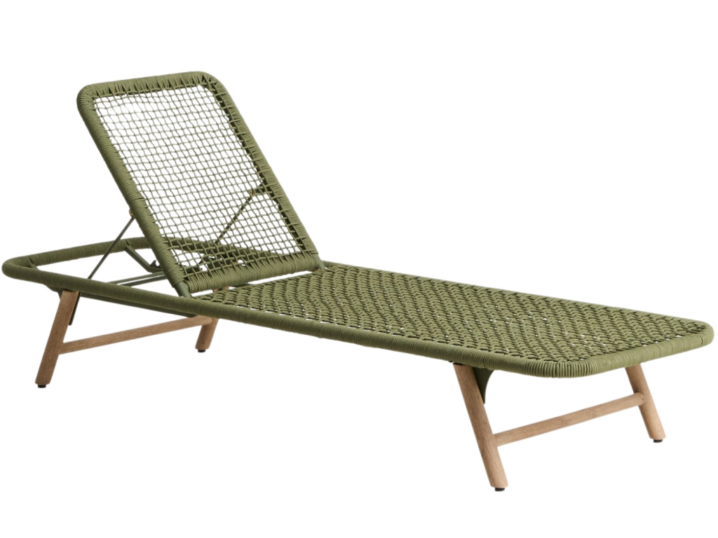 Zelené zahradní lehátko Dandara s dřevěnou podnoží