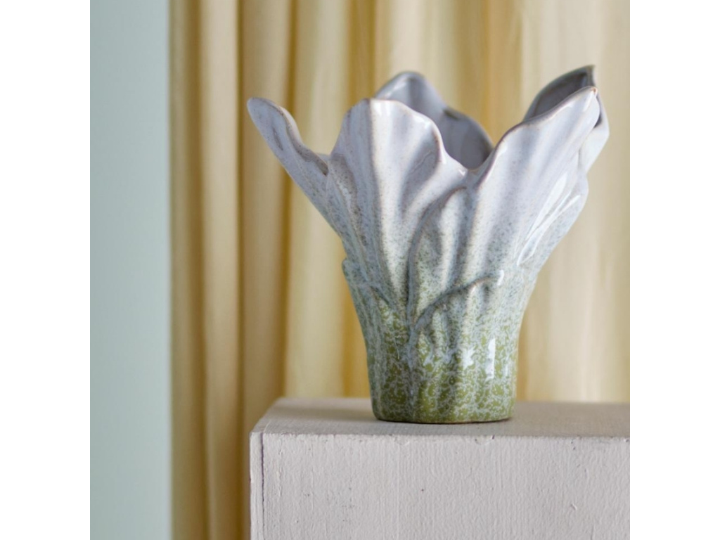 Váza Erato se stane malým uměleckým dílem na vašem stole či polici. Její plynulý tvar inspirovaný přírodními liniemi a přechody mezi odstíny zelené a bílé evokují harmonii krajiny. Ručně glazovaný povrch zajišťuje, že každá váza bude jedinečná, ať už ji využijete jako dekoraci nebo ji naplníte květinami. Vynikne v přírodně laděných interiérech nebo jako kontrastní prvek ve strohých prostorách. Erato přinese do vašeho domova jemnou eleganci a dotek přírody.