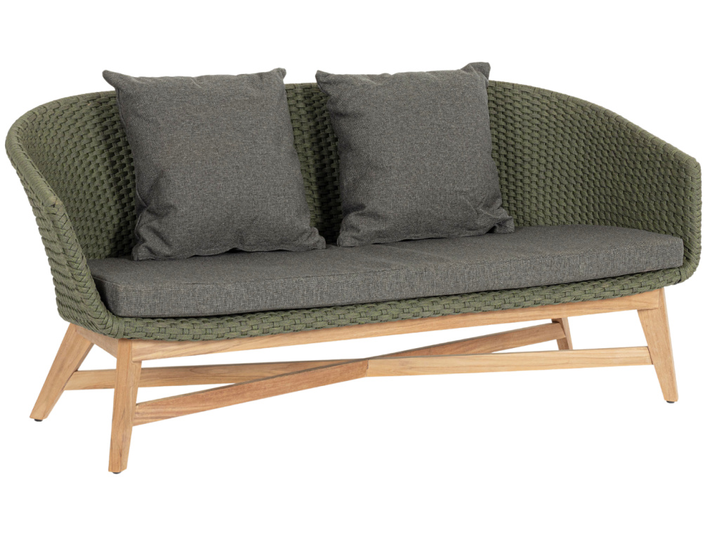 Pletená zahradní dvoumístná pohovka Bizzotto Coachella nabízí místo pro chvilku odpočinku, nebo pro pohodlné posezení s přáteli na vaší terase, či v altánu. Pohovka má tvarovaný sedák z kovu, který je hustě vypletený olefinovou tkaninou. Příjemným bonusem je měkký podsedák a a dva polštáře, které jsou možné sundat a vyprat. Výhodou je také odolnost povlaku vůči UV záření a vodě. Podnož je z teakového dřeva v přírodním odstínu. S řadou Coachella se můžete vždy těšit na vysoký komfort při sezení.
