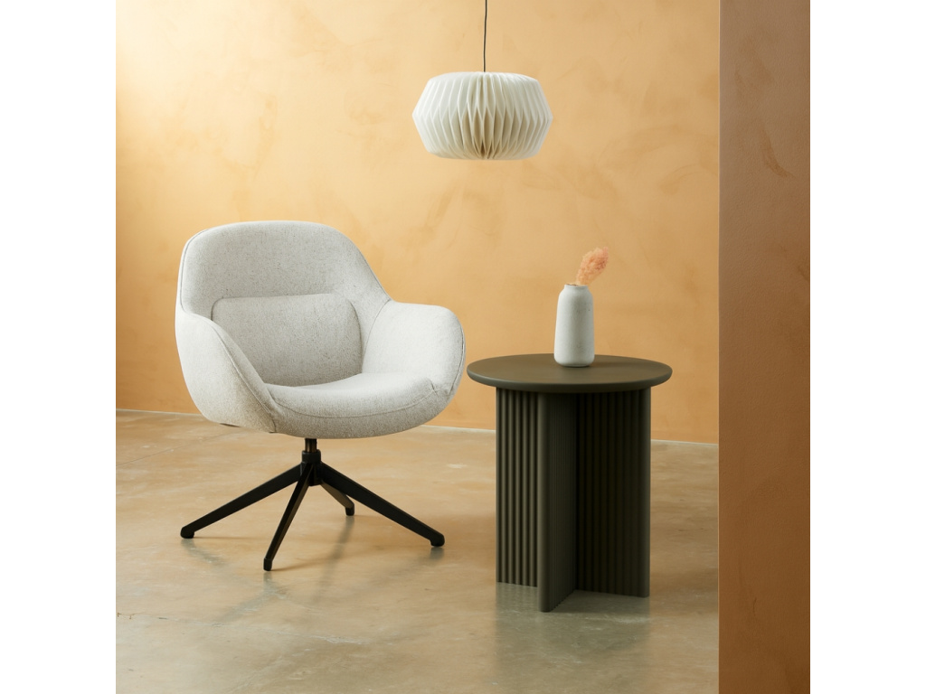 Odkládací stolek Palma značky Unique Furniture vyniká jednoduchými liniemi a originálním provedením, které na první pohled zaujme. Kulatá deska a jemné drážkování po obvodu dodává stolku lehkost a vytváří originální prvek ve vašem interiéru. Stolek je vyroben z lakovaného MDF v elegantním zeleno-šedém odstínu, což mu umožňuje dokonale zapadnout do různých stylů interiéru – od minimalistického po skandinávský. Také je ideální jako doplněk k pohovce, křeslu či posteli, kde poslouží k odložení knih, dekorací nebo nápojů. V kolekci Palma naleznete také komody, jídelní i TV stolky, takže můžete svůj interiér sladit do jednotného stylu.