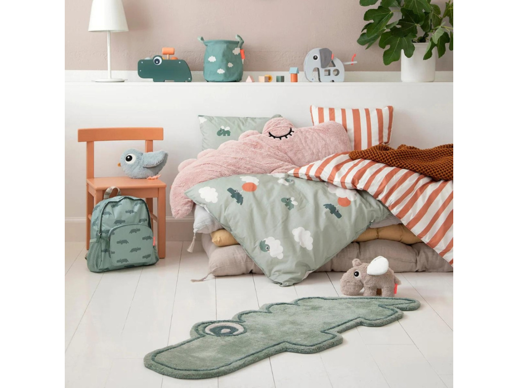 Zútulněte pokojíček vašeho drobečka roztomilým kobercem od značky Done by Deer. Kobereček v podobě krokodýla Croca zaujme svým hravým designem a měkoučkým povrchem, na kterém bude chtít vaše ratolest trávit hodiny a hodiny bezstarostného hraní. Na spodní straně koberce najdete silikonové protiskluzové body – a nemusíte se tak bát, že bude koberec klouzat. Skvěle poslouží i jako podložka k postýlce.