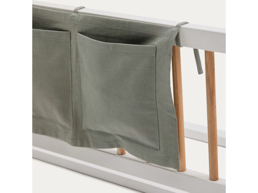 Praktický organizér Kave Home Laily se dvěma kapsami můžete zavěsit na postýlku a mít tak po ruce všechny nezbytnosti, které pro vaše miminko potřebujete. A až vyroste, může organizér využít na drobní hračky. Je vyrobený ze 100% bavlny a dostupný je v holčičí i chlapecké barvě – v růžové i zelené. Kamkoliv zavěsit jej můžete díky trojici šňůrek.