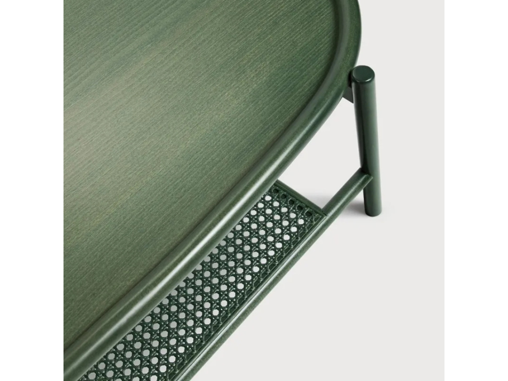 Konferenční stolek Drum M je dokonalou ukázkou propojení přírodní krásy, tradičních technik a moderní estetiky. Za návrhem stolku stojí Maja Ganszyniec Studio, které klade důraz na funkčnost a estetickou vyváženost. Každý detail tohoto stolku je promyšlený – od ladných křivek ohýbaného bukového dřeva až po tkaný ratan, který dodává jeho konstrukci vzdušnost a lehkost. Jedním z nejzajímavějších prvků je spodní police, která není jen dekorativním prvkem, ale zároveň chytrým konstrukčním řešením. Přírodní výplet je natažen přes dřevěný rám a jeho pevnost spočívá v dokonale vyváženém napětí. Drum M si vás získá nejen svými křivkami a precizním řemeslným zpracováním, ale také zeleným odstínem, který přináší do interiéru klidnou eleganci a příjemný přírodní nádech. Tento stolek není jen funkčním kusem nábytku, ale především promyšleným designovým kouskem, který reflektuje řemeslnou tradici, inovativní přístup a smysl pro detail. Drum M je důkazem, že i praktický nábytek může být současně estetickým zážitkem.