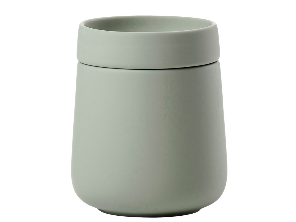 Uzavíratelný organizér do koupelny Nova One od dánské značky Zone Denmark esteticky skryje menší předměty a ochrání je před vlhkostí. Designový box se skládá z minimalistického kelímku a prohloubeného víka, které může sloužit i jako malá miska. Potěší vás jistě také pevný a odolný materiál z matné kameniny. Koupelnový organizér s víkem můžete využít například jako zásobník na vatové tyčinky nebo odličovací tampony. Vybírejte až ze sedmi barevných variant.