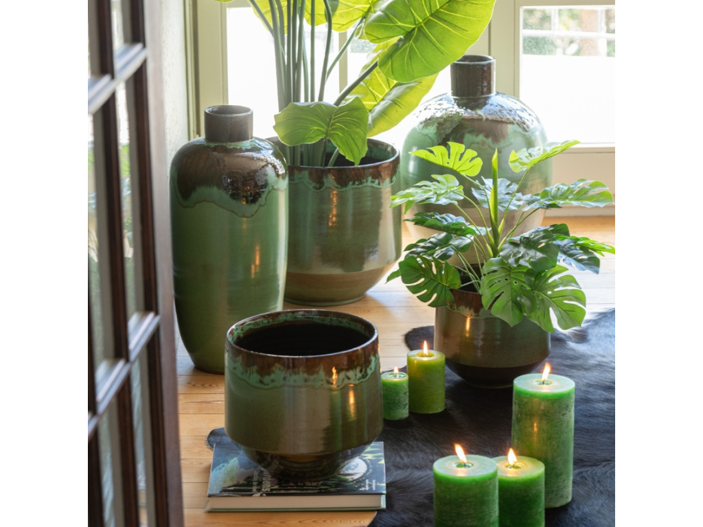 Stylový keramický květináč Alina značky J-Line oživí a zároveň zútulní váš prostor. Tento neobyčejný kousek v jedinečné zelené barvě má po obvodu zdobný prvek v tmavých tónech, který celému květináči dodává na originalitě. Bude se vyjímat v rustikálním, ale také v industriálním interiéru. Zkombinujte ho také s ostatními produkty ze stejné kolekce a vylaďte si tak váš domov k dokonalosti.