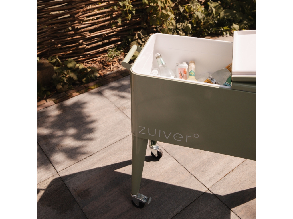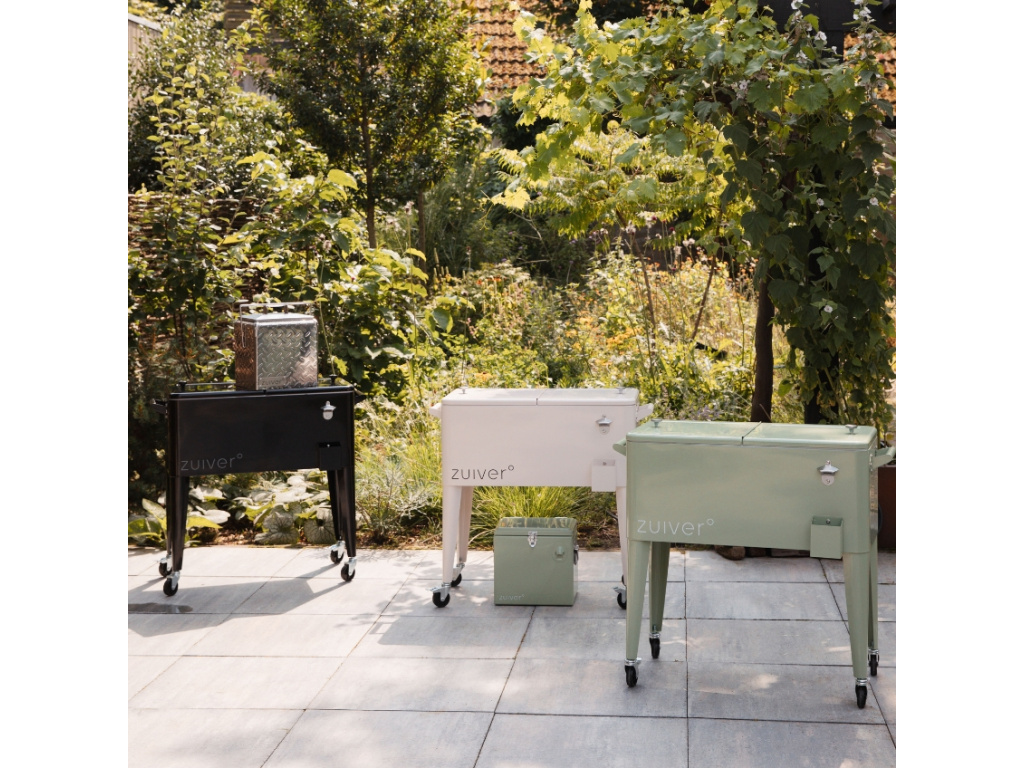 Užijte si osvěžující nápoje venku stylově s chladícím boxem BE COOL od značky ZUIVER. Kovová konstrukce na kolečkách zajišťuje snadnou manipulaci a díky výborné izolaci zůstanou vaše nápoje dlouho studené. Stačí ho naplnit ledem nebo chladicími vložkami a přidat své oblíbené nápoje. Integrovaný otvírák na lahve a praktické úchyty usnadňují jeho používání. BE COOL se stane ideálním společníkem pro pikniky, grilování nebo výlety. Dostupný je ve třech barevných provedeních – černé, zelené a krémově bílé.