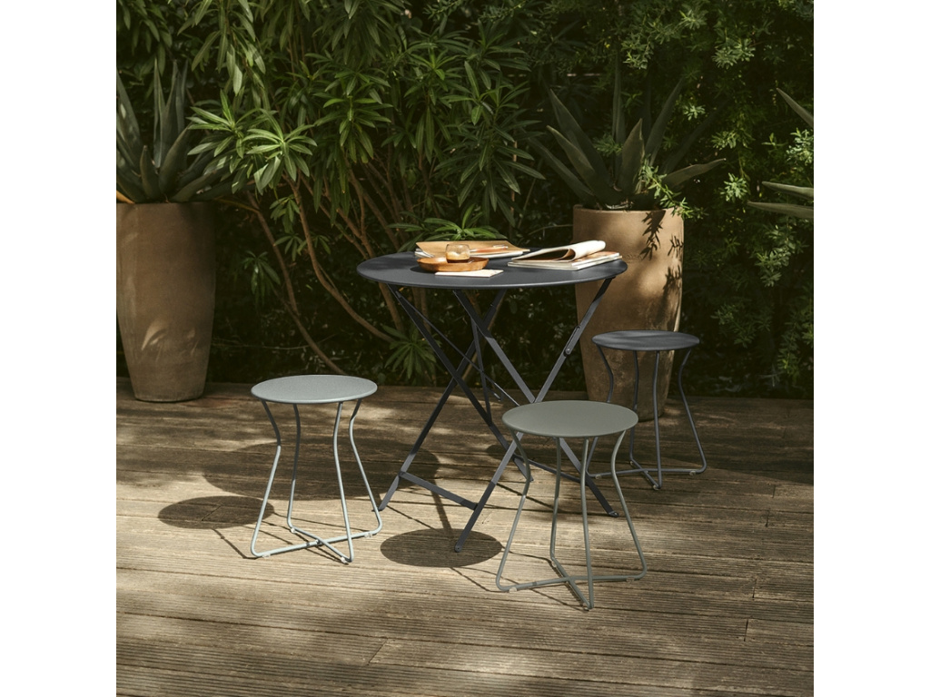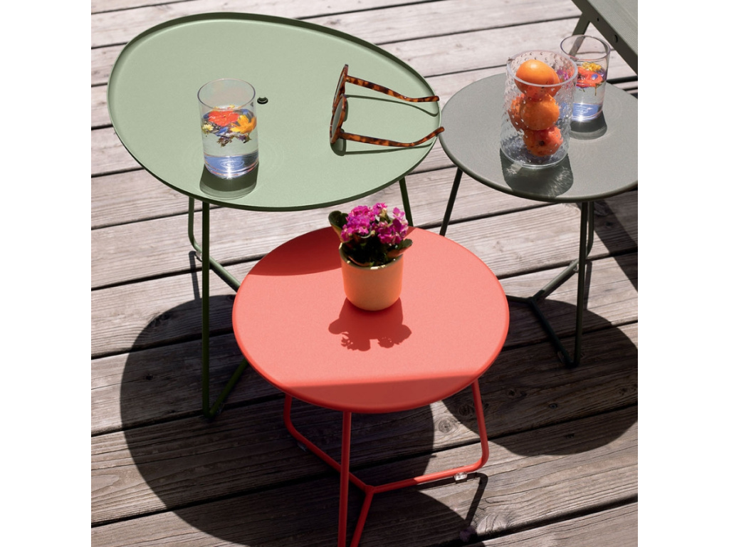 Celokovový odkládací stolek Fermob Cocotte je dostupný v široké škále barev Fermob, díky čemuž se může snadno stát stylovým kouskem nábytku ať už u bazénu, na terase nebo dokonce v obývacím pokoji. Má perfektní rozměry pro odložení nápoje a rozečtené knihy, ale také k umístění rostlin a designové venkovní lampy. Je vyráběn z prvotřídních materiálů a testován tak, aby splňoval standardy kvality evropských norem (NF EN 581-1 a NF EN 581-2). Exkluzivní systém antikorozní úpravy pro venkovní použití a anti-UV práškový lak (standardizované testy AFNOR) dělá ze stolku ideálního společníka.