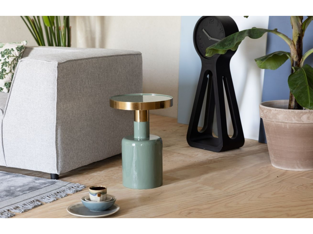 Odkládací stolek ZUIVER GLAM v zeleném provedení je skvělým doplňkem do vašeho interiéru. Díky smaltované oceli, kovovému základu a zlatavým doplňkům vytváří příjemnou kombinaci, která se skvěle hodí nejen do moderních interiérů.
