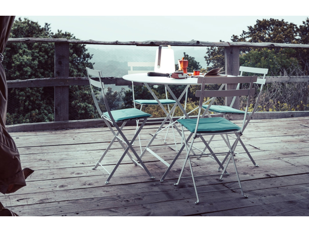 Celokovový stůl Bistro je inspirován stoly, které byly vyráběny na konci 19. století a které byly typické pro prodejce limonád a rychlého občerstvení. Dnešní moderní pojetí tohoto stolu neztratilo nic ze své předešlé slávy ani funkčnosti. Naopak, model, který přestavuje společnost Fermob získal na vynalézavosti a veselosti. Stoly Bistro jsou vyráběny z prvotřídních materiálů a jsou testovány tak, aby splňovaly standardy kvality evropských norem (NF EN 581-1 a NF EN 581-2). Exkluzivní systém antikorozní úpravy pro venkovní použití a anti-UV práškový lak (standardizované testy AFNOR) dělá ze stolu ideálního společníka jak do venkovních, tak i do komerčních prostor.