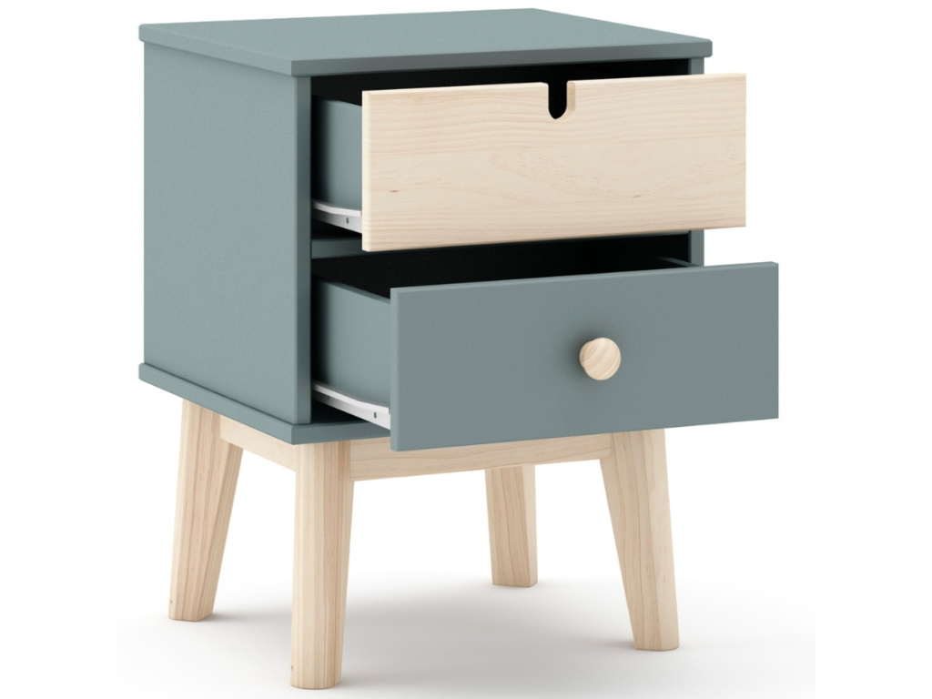 Noční stolek Marckeric Estefania vyniká svým minimalistickým designem. Stolek v zelené barvě je vyrobený z MDF a podnož a úchytka jsou z masivního borovicového dřeva, které celému nočnímu stolku dodává styl. Estefania se dvěma zásuvkami se skvěle hodí například do dětského pokoje, kam přinese příjemnou atmosféru. Hodit se ale bude také do ostatních místností vašeho domova, které jsou laděné do skandinávského stylu.