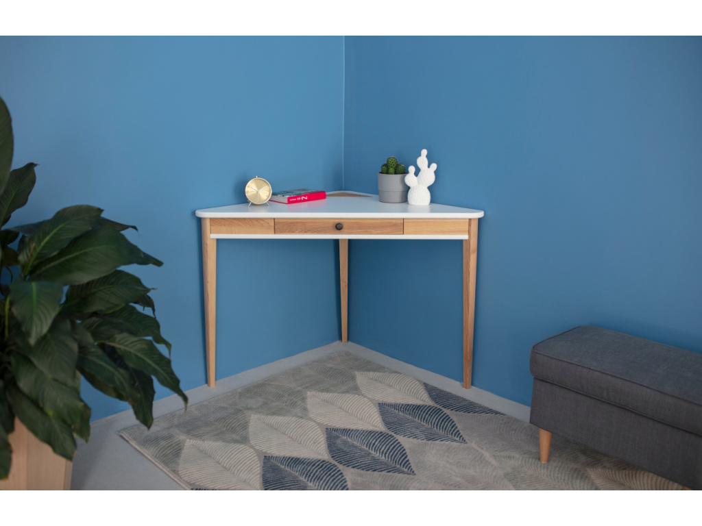 Pracovní stůl RAGABA ASHME je tady pro všechny, kteří kladou důraz na funkčnost a minimalistický design. Deska stolu je vyrobena z lakovaného MDF a doplňuje ji dřevěný organizér na vývod kabelů. Elegantní podnož tvoří tři dlouhé nohy, které jsou vyrobeny z jasanového dřeva. Na stůl se vám hravě vejde například notebook a kancelářské potřeby. Praktická zásuvka je opatřena tlumičem, který zajistí hladké otevírání a zavírání a nebude tak docházet k rychlému opotřebení. Díky svému tvaru a velikosti bude ASHME ideálním kouskem do menších interiérů či garsonky. Zároveň se stane perfektním designovým kouskem do vaší pracovny. Využití najde také v dětském nebo studentském pokoji.