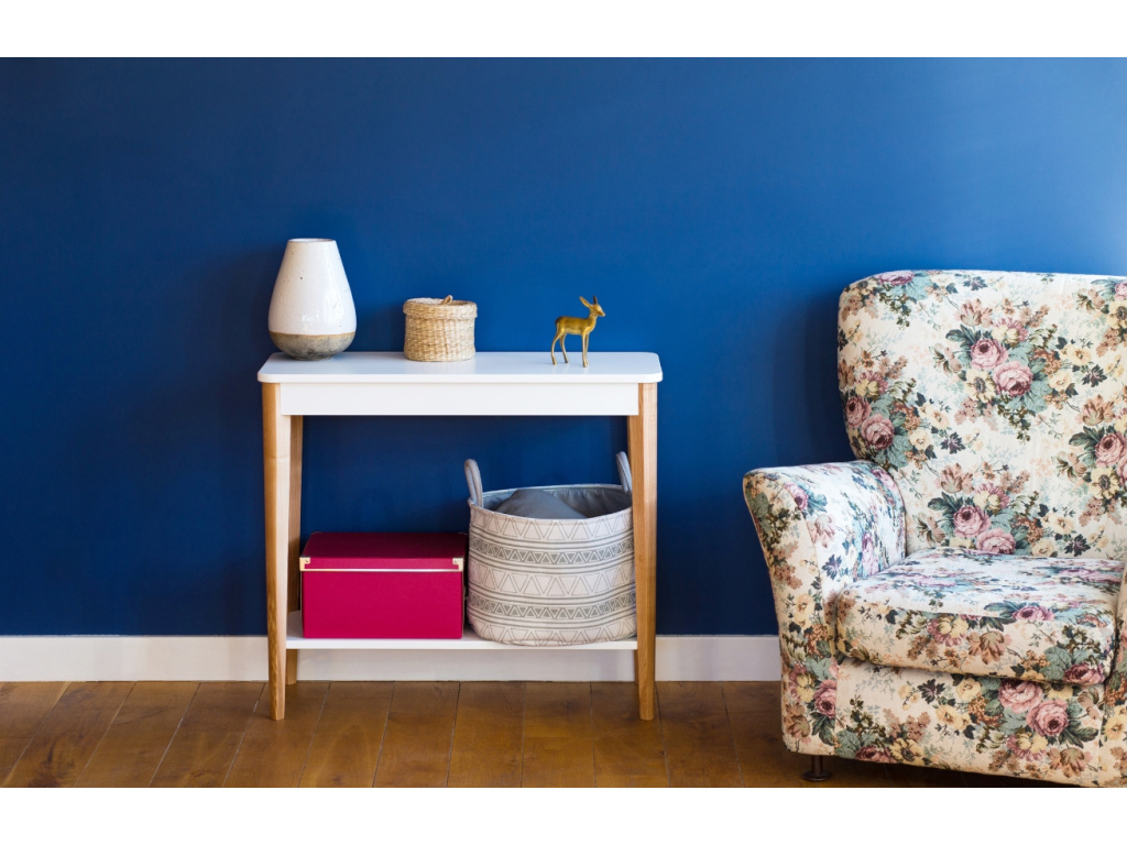 Toaletní stolek RAGABA ASHME je moderním stolkem, který je inspirovaný klasickým skandinávským designem. Stolek snoubí minimalismus v podobě čisté desky z MDF s elegancí ve formě vysoké podnože z jasanového dřeva. Praktickým prvkem stolku je spodní police, kterou využijete na vaše oblíbené dekorace, knihy či květiny. Díky své úsporné velikosti se toaletní stolek hodí i do menších interiérů a skvěle vynikne například v ložnici, obývacím pokoji či předsíni. ASHME lze využít také jako odkládací či barový stolek na různé večírky.