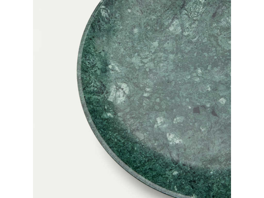 Servírovací talíř Kave Home Ecin je vyrobený ze zeleného mramoru, takže každý kus je exkluzivní s vlastními žilkami a odstíny. Dostupný je ve třech různých velikostech a také v zelené barvě – všechny tyto kousky přinesou na váš stůl nádech elegance a luxusu. Naservírujte na ně drobné občerstvení a slané i sladké pochutiny, nebo je využijte k vystavení drobných dekorací a svíček.