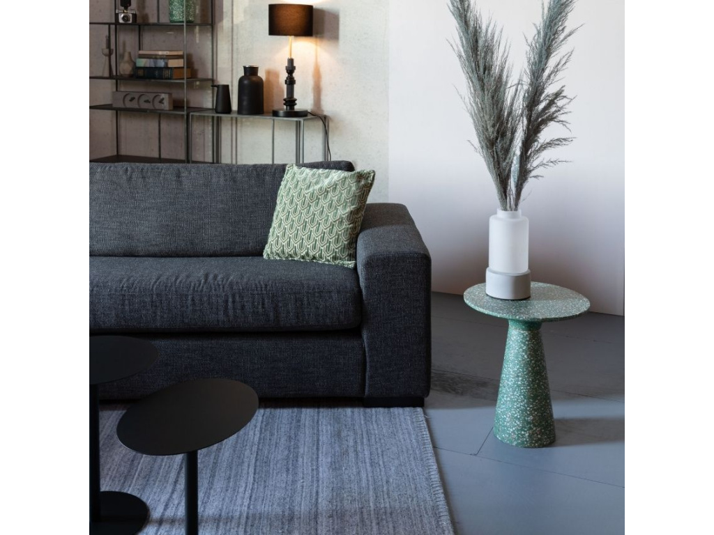 Stylový odkládací stolek Victoria je stolek s charakterem. Terrazzo je spojením kousků mramoru a betonu a tím vzniká atraktivní kontrast, který s sebou přináší osobitost a unikátní design. Jemná kombinace žlutých a bílých kousku na zeleném podkladu dodává stolku hravost. Stolek Zuiver Victoria skvěle doladí moderní interiéry.