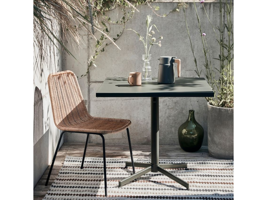 Zelený stolek Helo je skvělým řešením pro vaši terasu či balkon. Díky decentnímu vzhledu je možné jej kombinovat s nábytkem jakéhokoliv stylu. Je snadno omyvatelný a udržovatelný. Pokud se stolek nepoužívá, jednoduše sklopte horní desku do svislé polohy a uložte stranou. Nenechávejte stolek Helo venku na dešti a chladu.