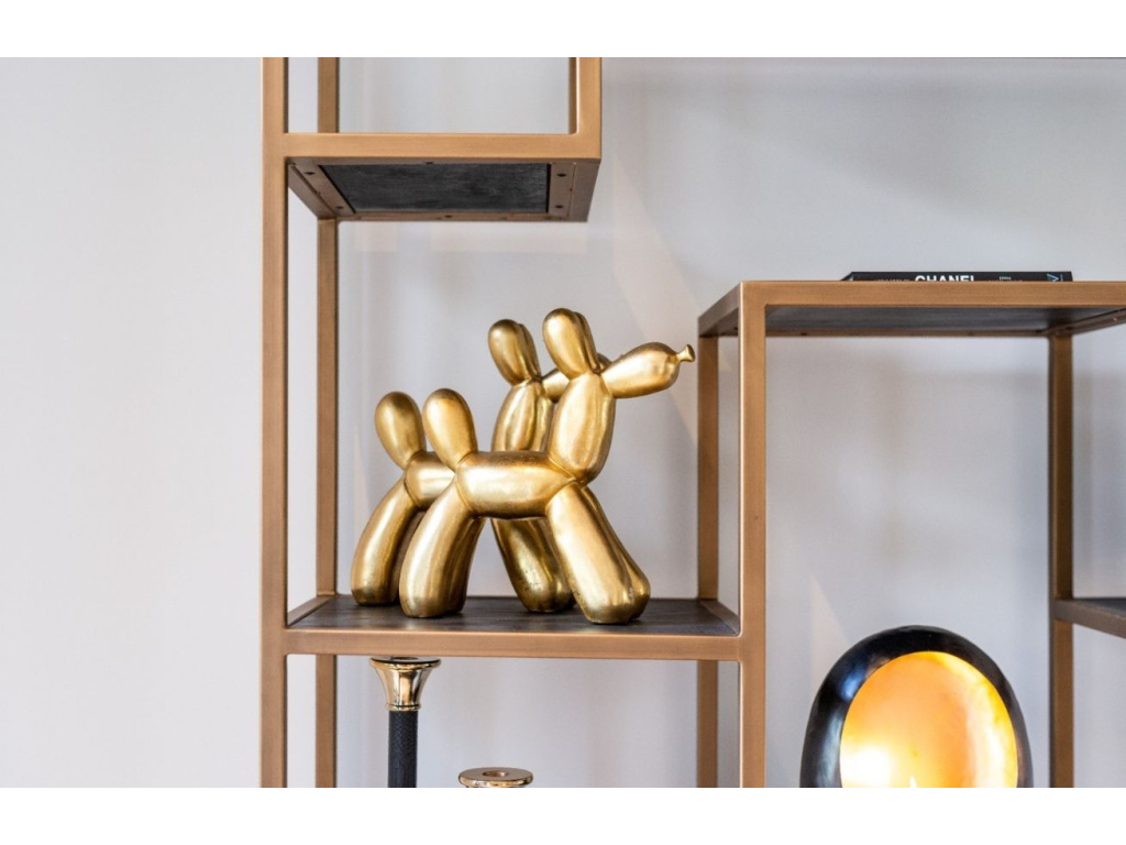 Pokud jste příznivci výrazných originálních dekorací, pak vás jistě zaujme soška Dog značky Richmond. Je skoro 30 cm vysoká a vypadá jako postavička pejska utvořená z balonků, která se prodává na pouti. Je vyrobená z polyresinu a díky zlaté barvě s sebou přinese nádech luxusu.