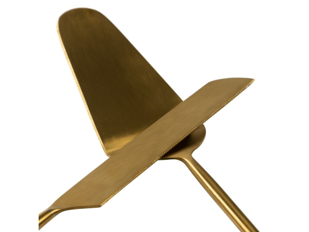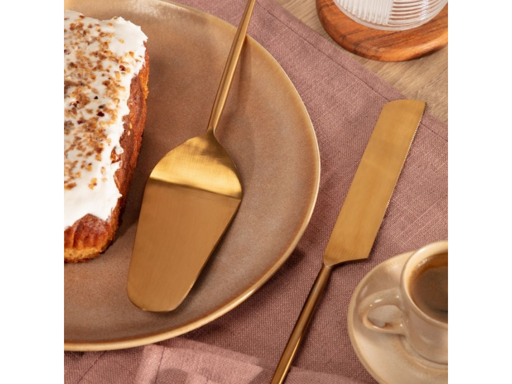 Zlatá servírovací sada dvou příborů na dort Kave Home Lite obsahuje dortový nůž a servírovací lopatku z nerezové oceli. Užijte si sladké dezerty naplno a stylově. Sada příborů na dort Kave Home Lite zazáří a vnese eleganci na každý jídelní stůl v moderním interiéru.