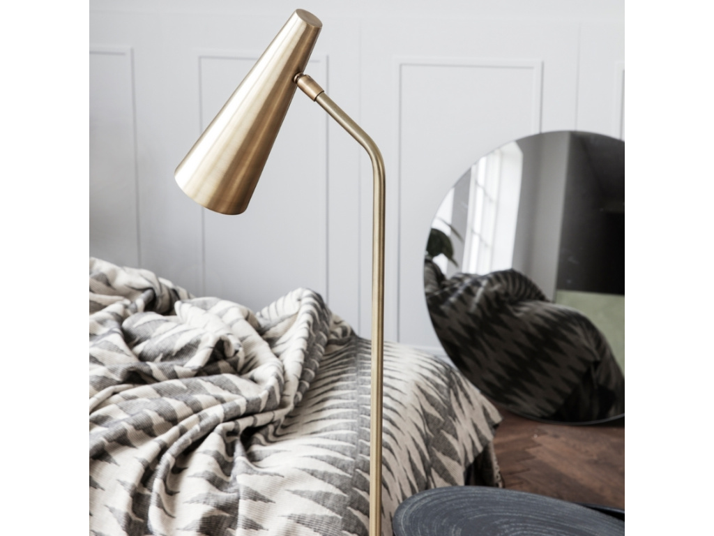 Kovová lampa Precise vás zaujme svým dokonalým minimalismem hned na první pohled. Jednoduchá základna, tyč i podlouhlé, rozšiřující se stínidlo je vyrobené z lakovaného kovu v luxusním zlatém provedení, které rozzáří každý tmavší kout vaší domácnosti. Lampu umístěte k pohovce nebo čtecímu křeslu, zkombinovat ji lze také se stolní lampou ze stejné kolekce.
