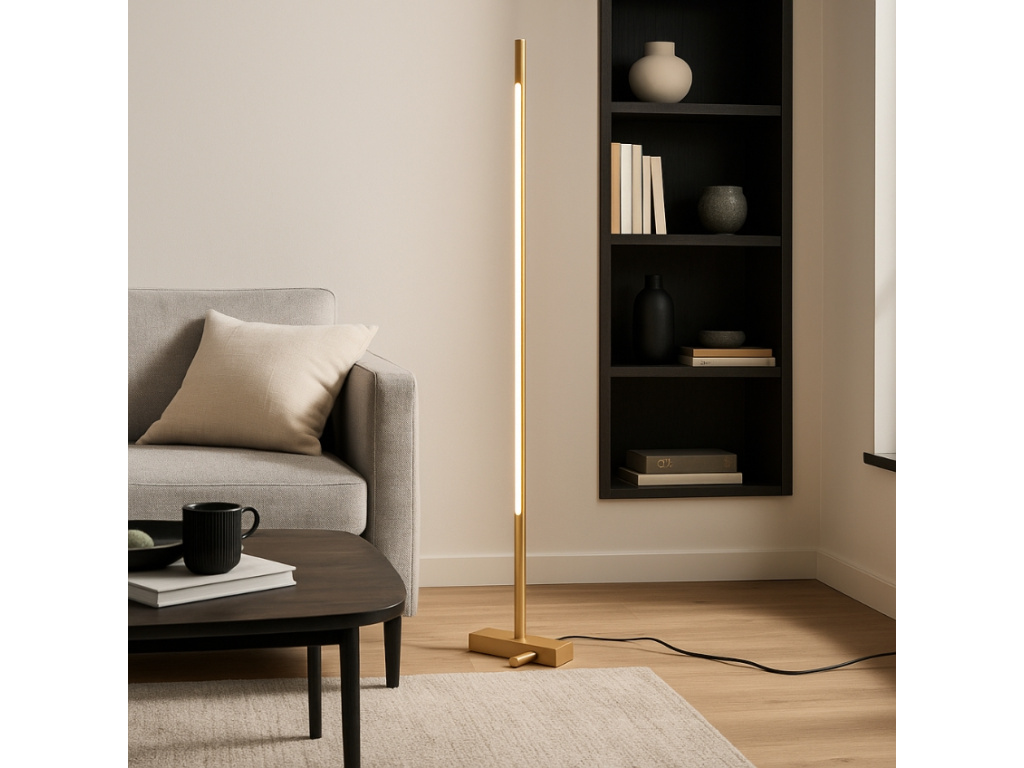 Stojací LED lampa Raccio od značky Nova Luce se stane dokonalou designovkou ve vašem moderním domově. Minimalistická lampa je vyrobena ze zlatě lakovaného kovu a akrylu čistém designu jednoduché tyče. V tyči se nachází LED světlo, které vyzařuje teplé příjemné osvětlení a v prostoru navodí útulnou a klidnou atmosféru. Tento unikátní design zaručí, že se lampa stane nejen funkčním doplňkem, ale také originální dekorací. Lampa je vybavena nožním spínačem, který vám usnadní její používání.