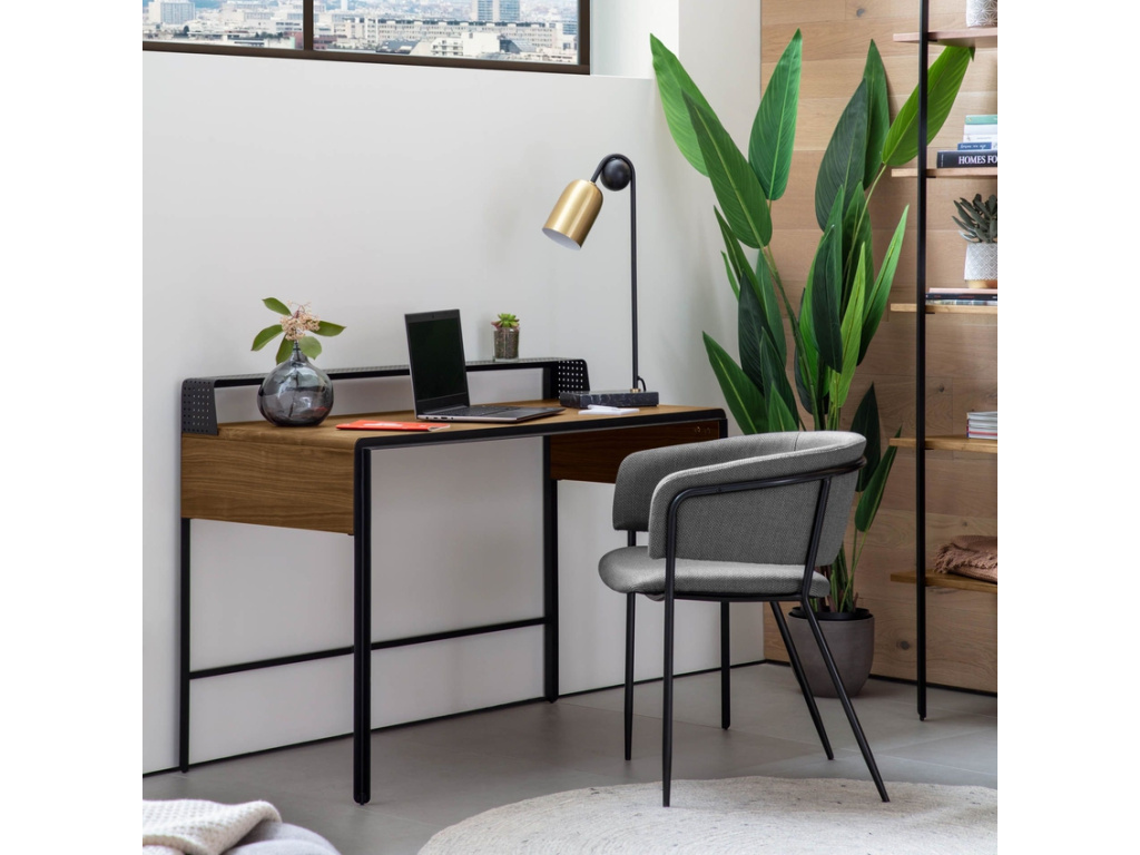 Kovová stolní lampa od firmy Kave Home je ukázkou kombinace moderního jednoduchého stylu a stylu vitange. Ihned zaujme svým stínidlem z pozlaceného kovu, které zajistí příjemné světlo v každé místnosti a vynikne obzvlášť na pracovním stole. Její tenké tělo je z kovu a nezabere tak moc místa, v ohybu u stínidla "drží" kouli, což je zajímavý prvek moderního designu. Podstava je z kvalitního černého mramoru, který spolu s ostatními částmi lampy tvoří dohromady elegantní a jedinečný kousek.