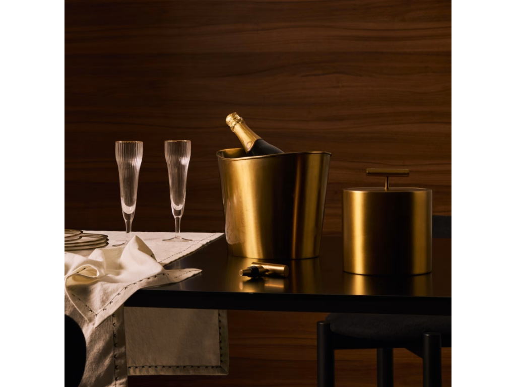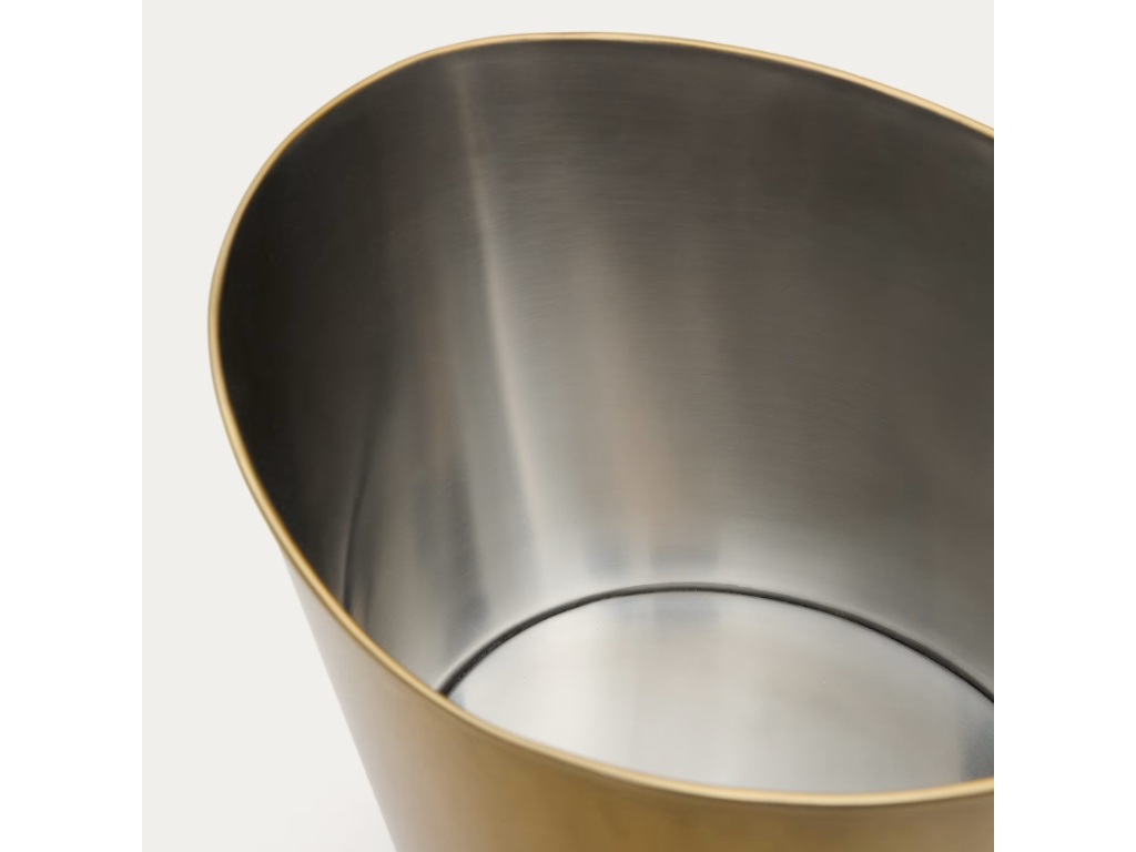 Série kuchyňských pomůcek a doplňků Aruc od značky Kave Home přinese na váš stůl dotek zlaté elegance. Patří do ní také prostorná chladící nádoba, která se skvěle hodí na každou párty i rodinnou večeři - pomůže vám vychladit lahve s podávanými nápoji a udržovat je během večera v dokonalé teplotě. Na stole ji může doplnit třeba dvoupatrový etažér, vícedílná servírovací miska a set táců – vše dokonale sladěné.
