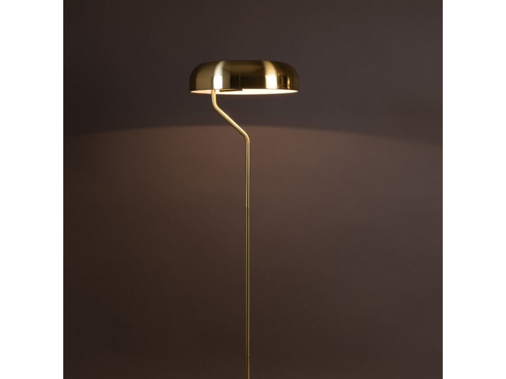 Zlatá stojací lampa Eclipse s úchvatným stínidlem, které vnáší světlo do jinak tmavých koutů Vašeho interiéru. Elegantní dojem této lampy vytváří mosazné provedení kombinované s kabelem v černé barvě. Neméně důležitou součástí této lampy je mohutná základna s pogumovanou spodní částí zaručující perfektní stabilitu a ochranu nábytku před poškrábáním.
